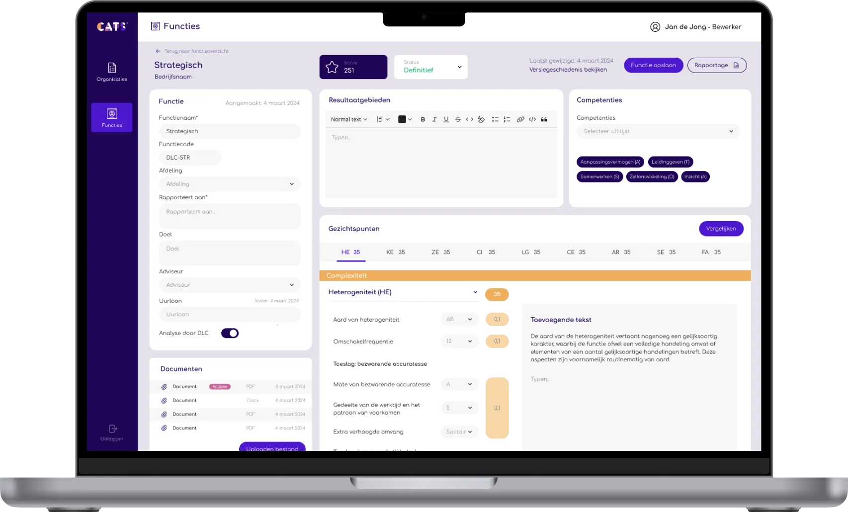 De tool is ontwikkeld voor het indelen van een functie op basis van de CATS ® -methodiek; een zuivere weging op getalsniveau welke te koppelen is aan het functieniveau.